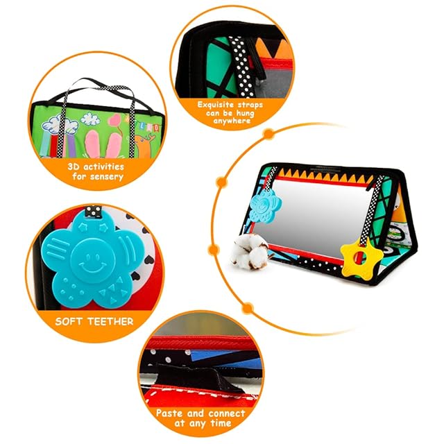 beetoy (ビートイ) タミータイム 赤ちゃんの鏡のおもちゃ 白黒のコントラスト模様 立体的なアクティビティプレイ カシャカシャと音がするおもちゃ 折り畳めるおもちゃ 知覚の発達 新生児 乳児 0~6ヶ月