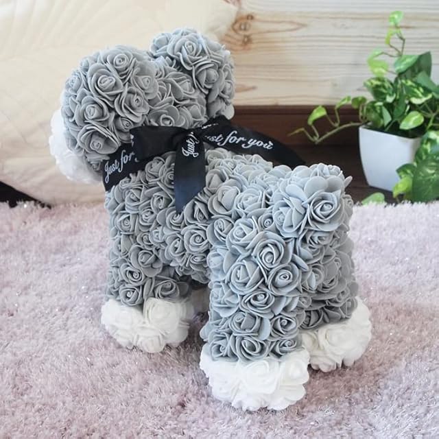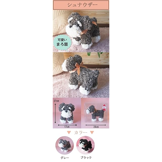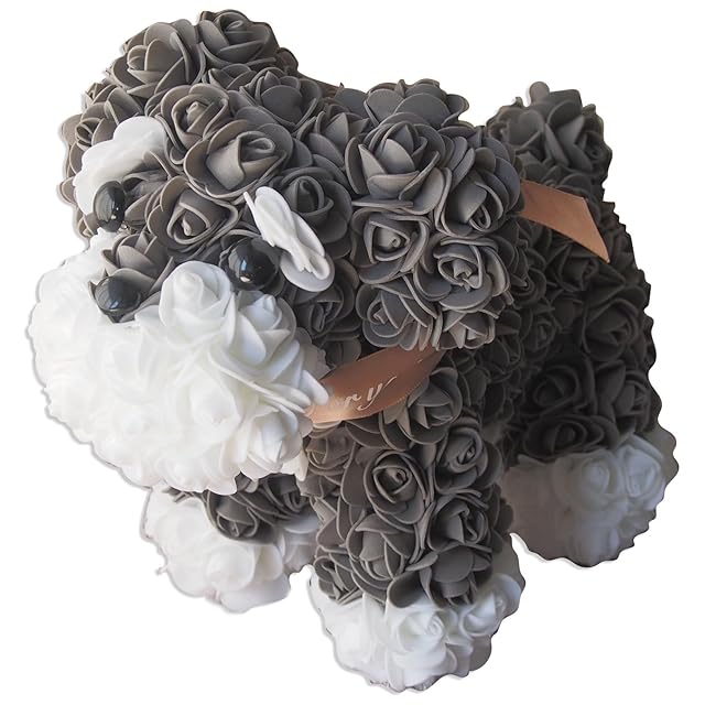 SaikaLife フラワードッグ1個 ミニチュアシュナウザー ローズ犬 誕生日 お祝い ギフト 薔薇 バラ 造花 犬グッズ (シュナウザー白眉)