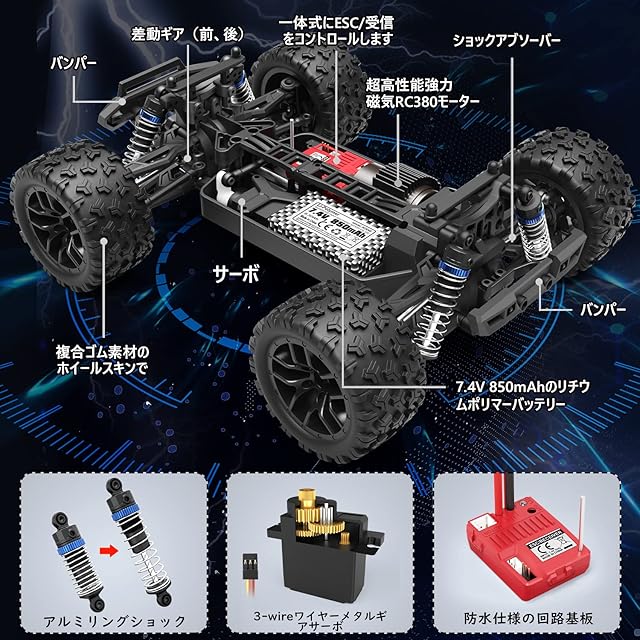 【2.4GHz無線抗干渉、IPX5】 2.4GHzラジオリモコン、リモートの混乱なしで80+mのコントロール距離。他人と一緒に同地同時に運動競技可能です。高感度ステアリングサーボ、回路は複数の保護設定がありす:1)モーターのブロック防止保護2)過熱および過電流の防止3)低バッテリー電圧カットオフ設定。同時電子部品にスプラッシュ水を採用する、にESC /受信機には防滴仕様のIPX5防水定格があります、水しぶき対策を行ったことがあります。どんな天候でもプレーできますラジコンカーおとな向けラジコンカーとラジコンカー 子供向け 人気。