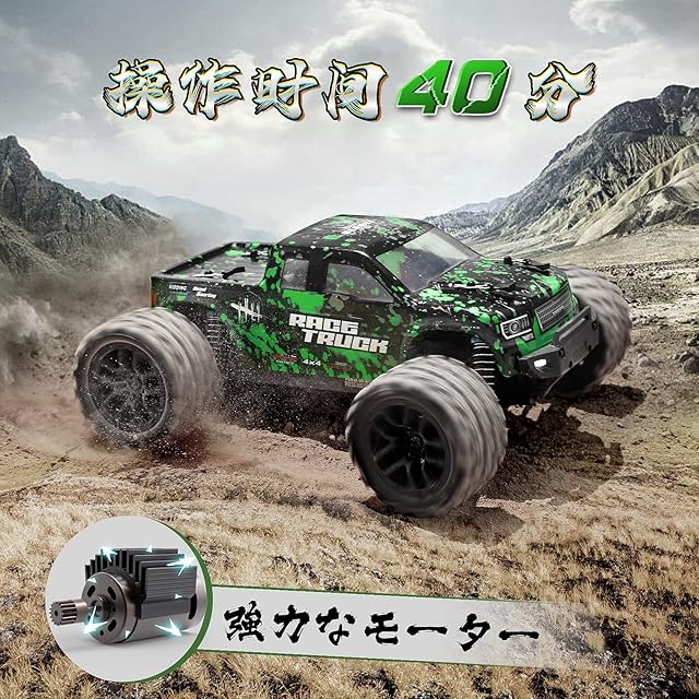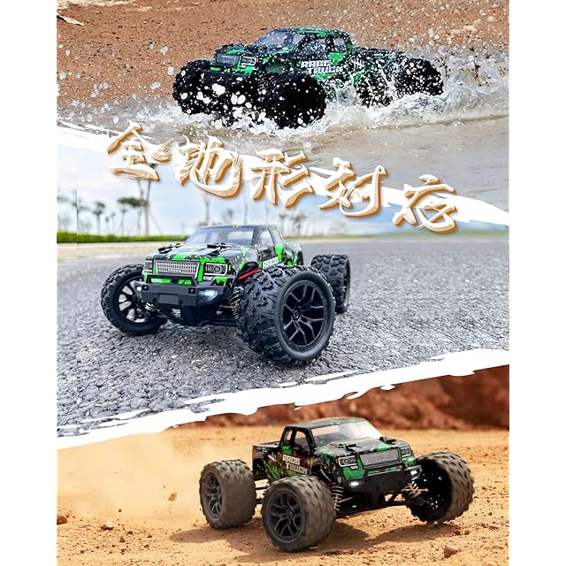 【パワフルでスピーディな 全地形対応 ラジコン オフロード モンスタートラック 】ラジコンカー オフロード、高いシミュレーション、分解が簡単。RTRモンスタートラックを搭載する前のような、今までにないオンとオフロードを楽しむことができます。内蔵電動380モーターで、強力なパワー、最大40KM/Hの速度制限を解除できます。フル機能のデジタル2.4GHzトランスミッタを搭載、低速/高速スイッチ、初心者向け低速、経験豊富なユーザ向け高速。