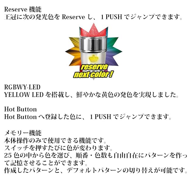 鮮やかな黄色発色: Yellow LEDを搭載し、鮮やかな黄色の発色を実現。