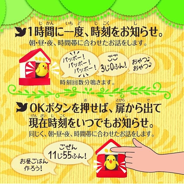 タカラトミーアーツ おしゃべりハト時計 目覚まし機能 スヌーズ 3分タイマー 時報 時間読み上げ 勉強 ハト時計 鳩時計 現在時刻確認