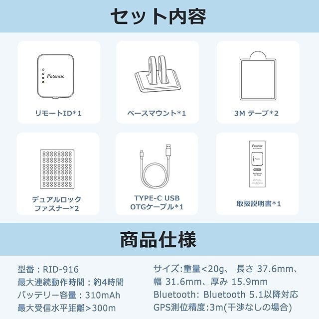 リモートID 外付け Potensic 発信機 軽量 Type-C充電 ドローン登録制度対応 国土交通省 対応モデル ベルクロ付き 技適認証済み ATOMシリーズ 100g以上のドローンに対応 RID-916