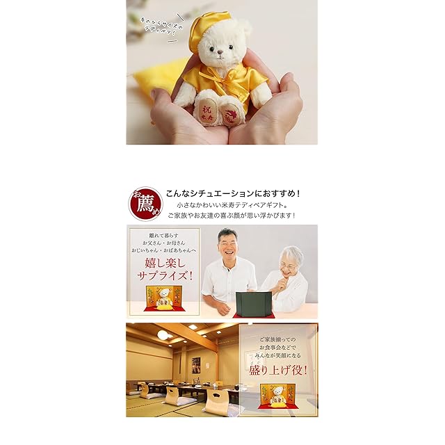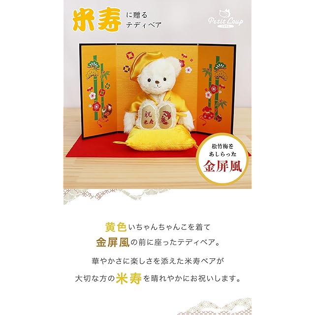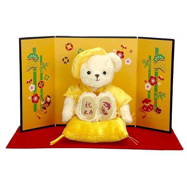 【プティルウ】長寿 ベア 12cm 小 サイズ (金屏風) 米寿 ノーマル