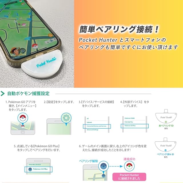 ✅【新機能付 最新 スマホ一体型オートキャッチャー】「Pocket Hunter」は、充電不要&軽量10g!スマホから直接電力供給するコンパクト設計のスマホ一体型オートキャッチでデバイスです!自動操作で効率よく自動捕獲&アイテム回収!モバイルバッテリー対応で長時間プレイにも最適。さらに、スマホのGPS機能を使った自動移動や範囲拡張の新機能により、新時代のゲーム体験がここに!全てのトレーナーにおすすめの最新デバイスです。