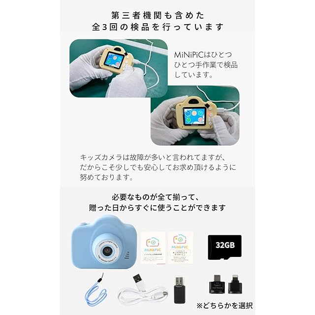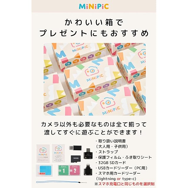 【日本企業】MiNIPIC ミニピク キッズカメラ トイカメラ 子供用カメラ ゲームなし スマホ転送 可能 男の子 女の子(スマホ用カードリーダー:lightning端子, パステルブルー)