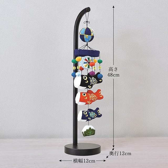 【 サイズ 】 横幅12 奥行12 高さ48cm。ちりめん(縮緬・布の鯉のぼり)男の子の端午の節句(初節句)お祝いの置物の鯉のぼり 室内 おしゃれで可愛い、5月人形コンパクトミニこいのぼり。ベランダのこいのぼり程豪華ではないですが、小さくモダンでかわいいミニサイズの卓上鯉のぼり