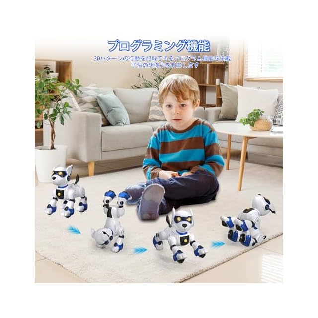 【10種動物の物真似&プログラム&タッチモード】①:10種動物の物真似する機能は子供に様々な動物の声の識別能力を育みます。②: 行動を記録できるプログラム機能搭載、子供の想像力を刺激します。③:タッチモード機能搭載で、タッチセンサー内蔵であごに触れてと、ロボット犬がランダムに甘える、怒り、子犬をあやす3つの動作をします、子供の触覚能力を育みます。本品はインテリジェントな犬型ロボットおもちゃ、子供の成長がお供します。