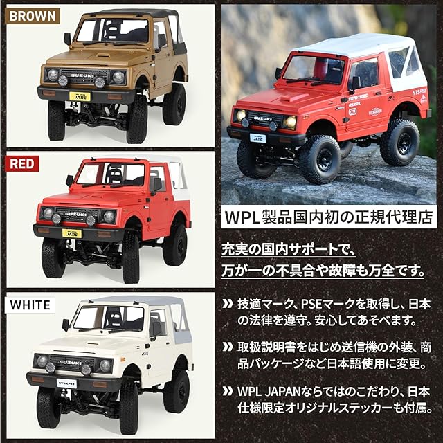 WPL JAPAN スズキ ジムニー(JA11C)ソフトトップ 幌車 1/10 アウトドア ラジコン 4WD 四輪駆動 RCカー ロッククローリング クローラー 技適マーク付き バッテリー付き (レッド)