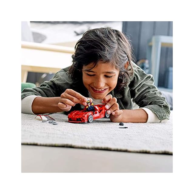 フェラーリ F8 トリビュートのモデルと、フェラーリのレーシングドライバーのミニフィグ1体が入っています。組み立てた後は、ドラマチックなレースを再現して遊べ、お子さまの想像力が育まれます。