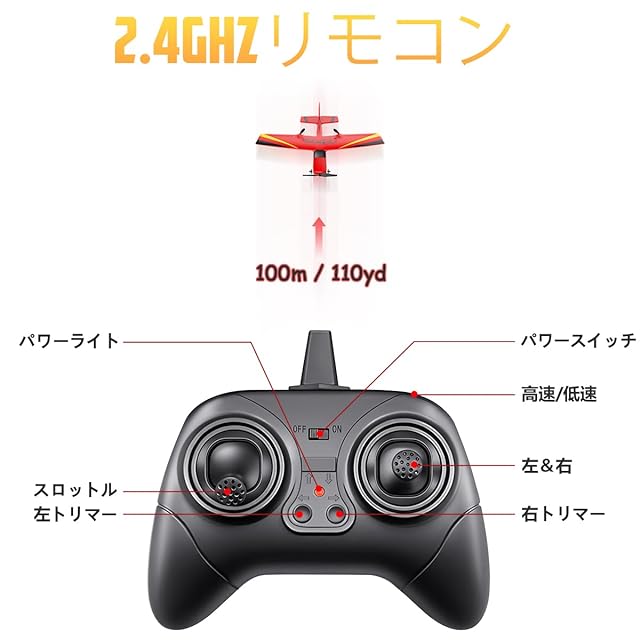 【2.4GHz無線制御システム】リモコンは航空機を制御して、上昇、下降、左折、右折させることができ。2.4Gリモートコントロールシステムなので、複数の航空機を飛ばせても互いに干渉さずに同時に飛行できます。