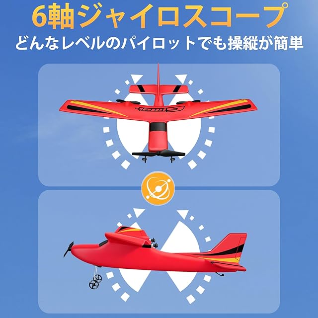 【飛びやすい】自動安定化ジャイロシステムが内蔵されて、このRC航空機は飛行がより簡単です。初心者は数十分の練習で飛行方法を身につけることができます。