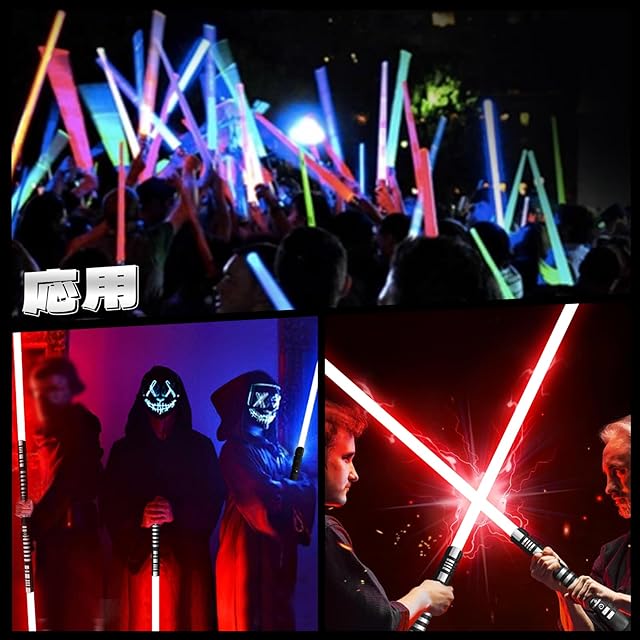 特徴:ライトセイバーには3つの異なるサウンドフォントとサイレント モードがあり、サウンドはパンチの効いた大きな音で、衝撃で色が一瞬変化する効果とブラスターのサウンドも付いています。セット内のコネクターを使用して、2 つのサーベルを連結し、ダース
