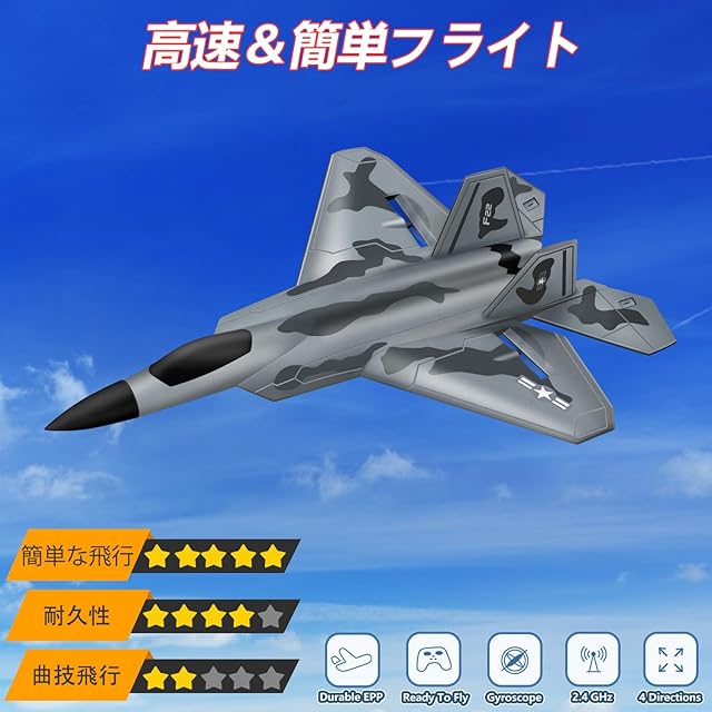 HAWK'S WORKラジコン飛行機、F-22 RC飛行機電動 されて簡単に飛ばせる 子供と初心者向けのラジコングライダー