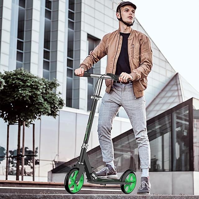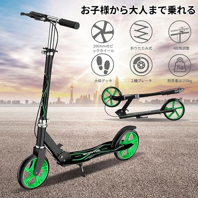 【1台あればみんなで遊べる】本体は軽量で頑丈なアルミボディを採用。デッキ面が滑り止め加工を施したことで、安心で快適な滑りをサポートします。身長の大きな方でも安定する大幅のデッキと、大人の手でも握りやすい長さとグリップ性が強いラバーグリップで乗り心地に特化した、移動に便利なキックボードです。