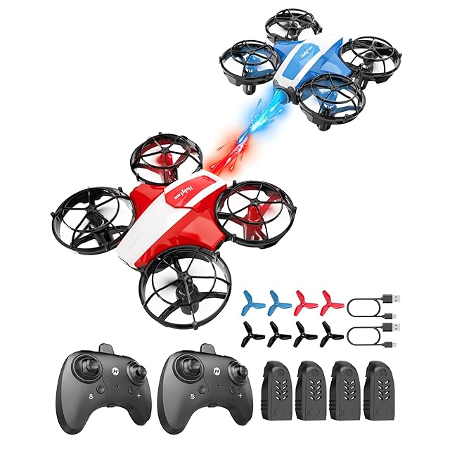 Holyton ドローン 100g未満 対戦型 2台セット 子供向け トイドローン 小型 室内 バッテリー4個 単発/連発モード 手投げテイクオフ ブーメランモード ヘッドレスモード 室内向け 初心者 男の子 女の子 プレゼント 国内認証済み HS330-B レッド+ブルー