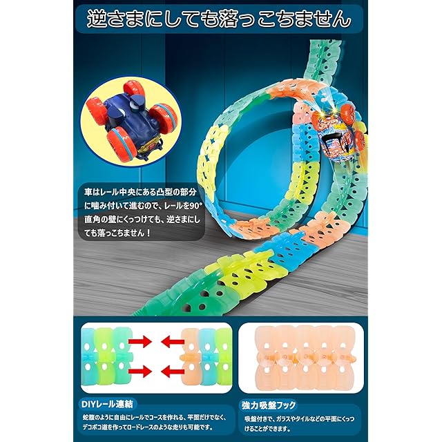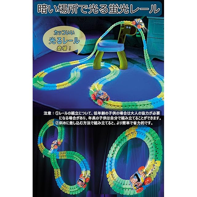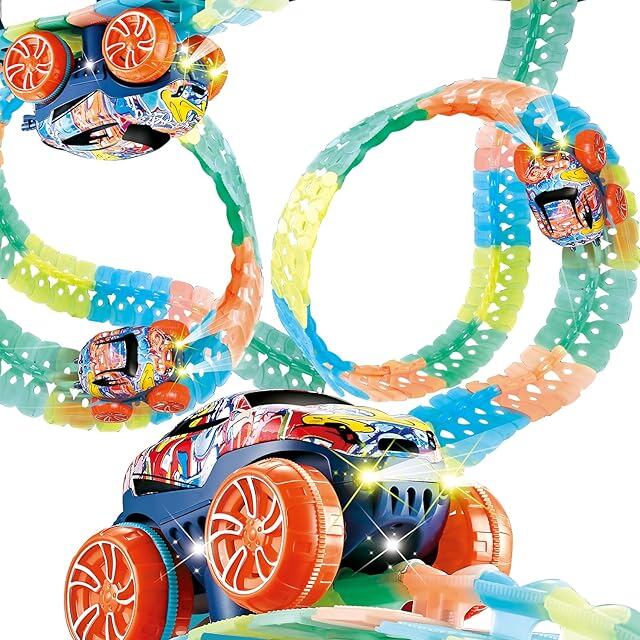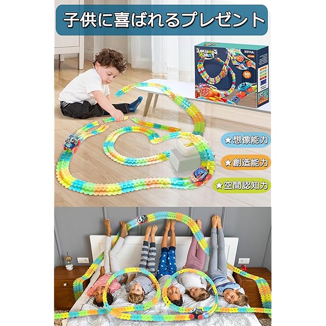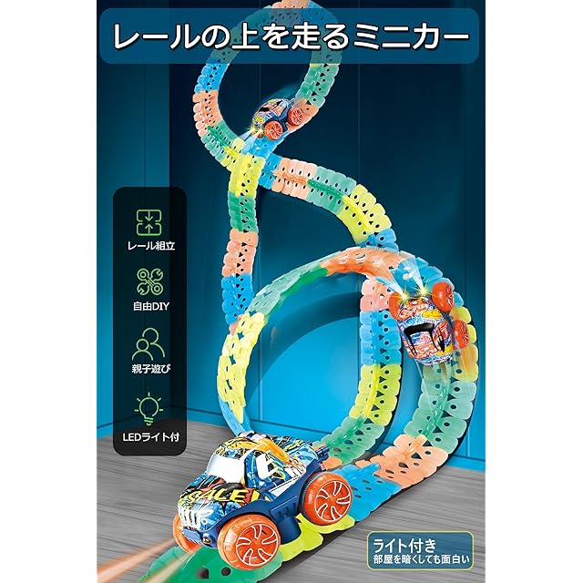 JUYEE おもちゃ 車 レール 組み立て 知育玩具 蛍光 立体パズル DIY 男の子 6歳+ 子供 人気 ランキング ミニカー 電動 誕生日プレゼント クリスマスプレゼント (188pcs)