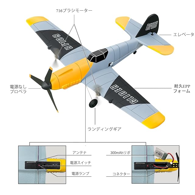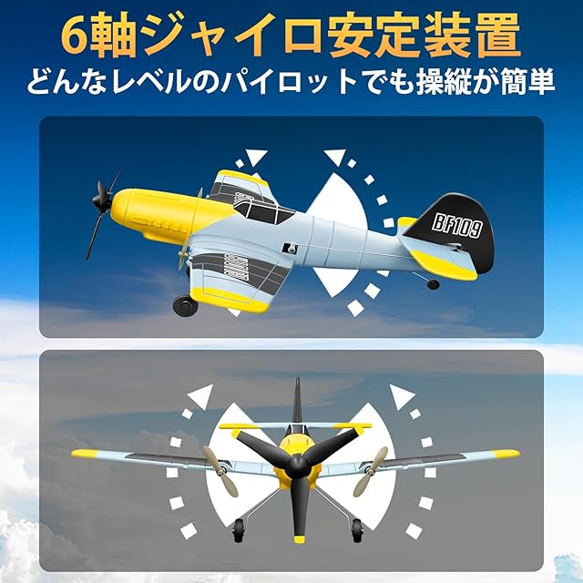 HAWK'S WORK 3チャンネルRC飛行機 BF-109、すぐに飛ばせるRC飛行機、2.4GHz 6軸ジャイロスタビライザー、子供や初心者でも簡単に飛ばせる