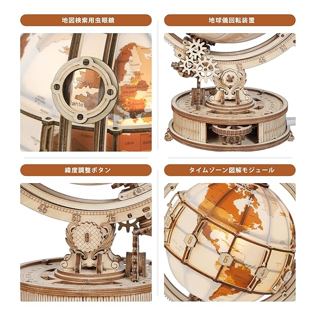 「面白いDIY体験」台座の波輪を回転させると、地球儀も一緒に回転し、25mmのミニチュア拡大鏡で地球地図の細部までよく見ることができます。また、世界の魅力を感じることができます。