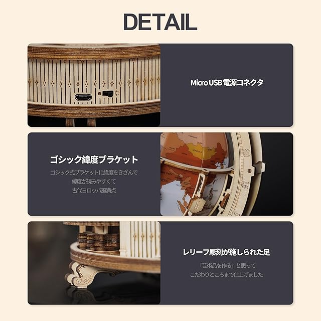「立体パズルを超える」このDIYモデルキットは3D木製パズルだけでなく、古典的に洗練された地球儀の装飾品と暖かい輝きを持つ夜間照明でもあります。
