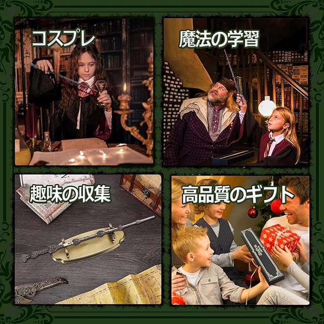 内容物: 杖、呪文リスト、チケット。外側は特別なハリーポッター杖収納ボックスに入れられ、内側はギフトボックスに美しく梱包されています。 友人や家族へのプレゼントにも最適です。