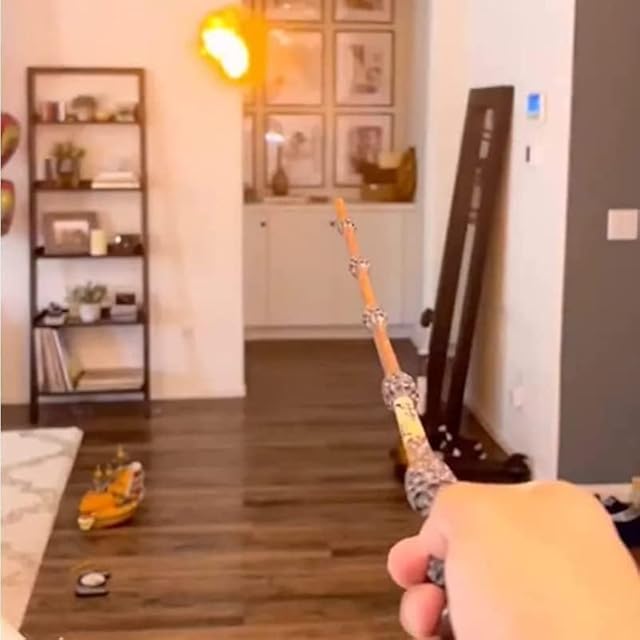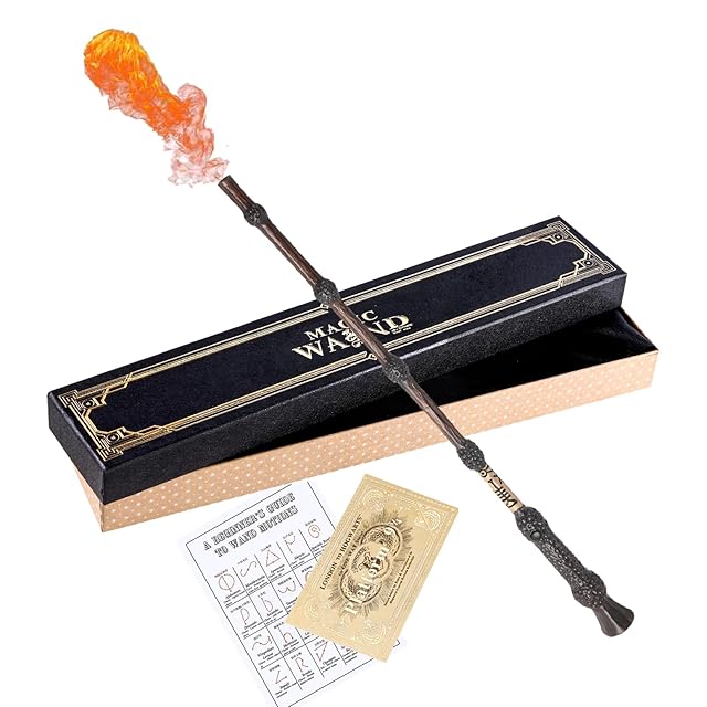 ハリーポッター 魔法の杖 ダンブルドア 杖 コスチューム用小物 道具 樹脂制 魔法学校風ステッキ 呪文 マジック 収納箱付き ハロウィン、文化祭、学校、誕生日会、誕生日プレゼント おしゃれ小道具 (ダンブルドア杖 火が出る)