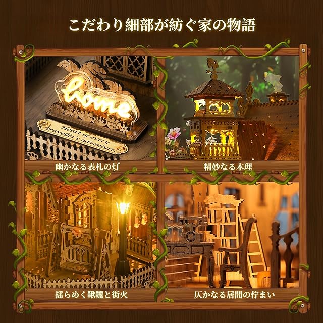 【プレミアム素材と繊細なディテール】高品質な合板とアクリルで作られており、安全で耐久性があります。田舎のコテージをイメージした外観やブランコ、街灯、温かいインテリアなど、細部までこだわったデザインが、田舎の生活を思い起こさせる楽しいDIYの旅を約束します。