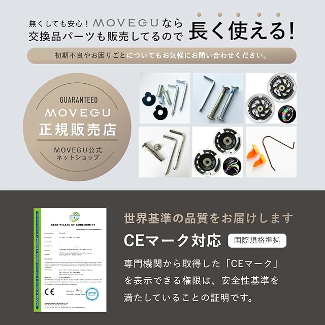 【日本語説明書・動画解説付き】日本メーカーMOVEGUだからこその丁寧なサポートで、購入後も日本人スタッフが迅速に対応します。組み立てや高さ調節、折り畳みもわかりやすい動画解説がついた取扱説明書があるので安心です。