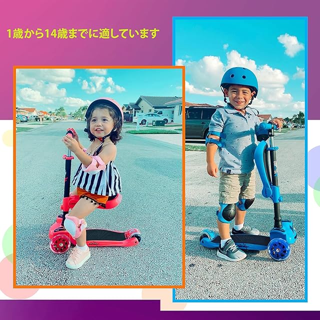 【座っても立って乗れるデザイン】: この子供用スクーターには、45ポンドの容量を持つ取り外し可能な折りたたみ式シートが付いており、快適なクルージングオプションを提供します。成長に応じてスムーズな移行を保証し、自信を持って立っている子どもたちに取り外すことが容易です。
