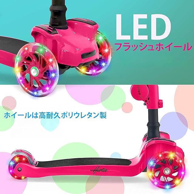 【Hurtle ハートル 3輪 キックスクーター】 子供用 折りたたみ式 キックボード 子供/幼児用おもちゃ高さ調節可能 滑り止めデッキ LED点滅ホイールライト内臓 男の子/女の子用 1歳から14歳 (ピンク) HURFS66【安心の6ヶ月間メーカー保証付】