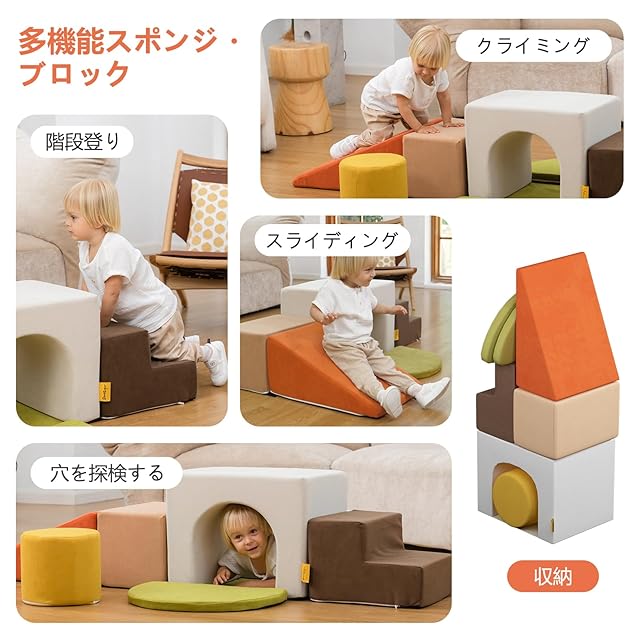 【探求と創造性】このセットには、登ったり、這ったり、滑ったり、組み立てたりするための7つのフォームクライミングブロックが含まれており、子供たちの身体的協調性や運動スキル、想像力を育むさまざまな遊びの活動に役立ちます。