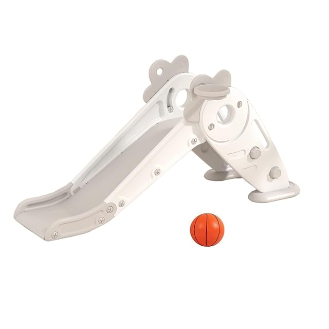 滑り台 折りたたみ 子供用 室内 安全設計 1歳から使えるす 耐荷重75KG バスケットボールフレーム付き 滑り台 すべりだい 組み立て簡単 遊具 キッズ 誕生日プレゼント (White)