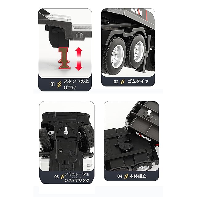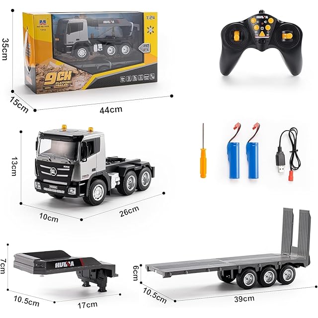 【複数のサイズの建設車両に最適】 83cmの非常に長いフラットベッドトレーラーを使用すると、RCカー、掘削機、ブルドーザー、ダンプトラックなど、1:18、1:24、1:50スケールのあらゆるタイプのエンジニアリング車両を牽引できます。 楽しみと創造性のためのより多くのスペースを提供します。