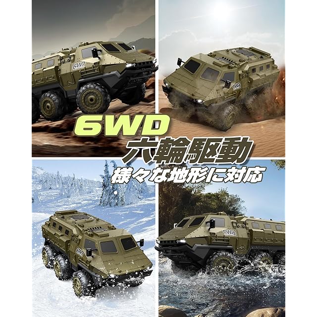 DEERC ラジコンカー ミリタリー 装甲車 6WD RTR 全地形対応 滑り止めタイヤ 低電压アラーム 360°回転 無段階制御 全方位走行 1/16スケール 操作時間120分 バッテリー2個付き 2.4GHz RC プレゼント 初心者 子供 男の子 小学生 中学生 贈り物 祝日 誕生日 入学 こどもの日 9510E