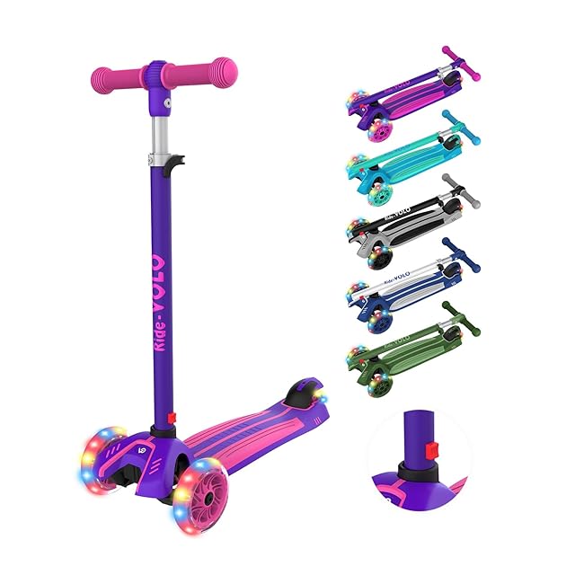 RideVOLO キックスクーター 子供向けキックボード キックスケーター 女の子 三輪車 三段階高さ調整 光るLEDタイヤ 耐荷重50kg アウトドアに適用 おもちゃ 安定 パープル