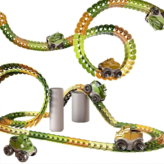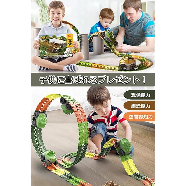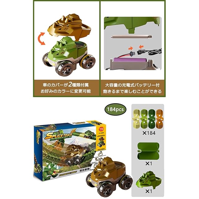 JUYEE おもちゃ 車 レール 組み立て 知育玩具 恐竜 立体パズル DIY 男の子 子供 人気 ランキング ミニカー 電動 ビルディングブロック 誕生日プレゼント クリスマスプレゼント (184pcs)