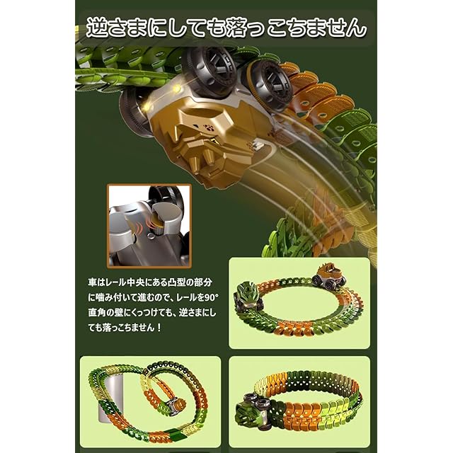 【レールの上を走る車おもちゃ】車はレールの上を走ることができ、レールは曲げたり、スナップしたりして、さまざまな形に変形することができます。屋内はもちろん、屋外スペースをDIYのトラックコースに変え、そびえ立つトラックや360°ループを構築して車を走らせて遊べます。