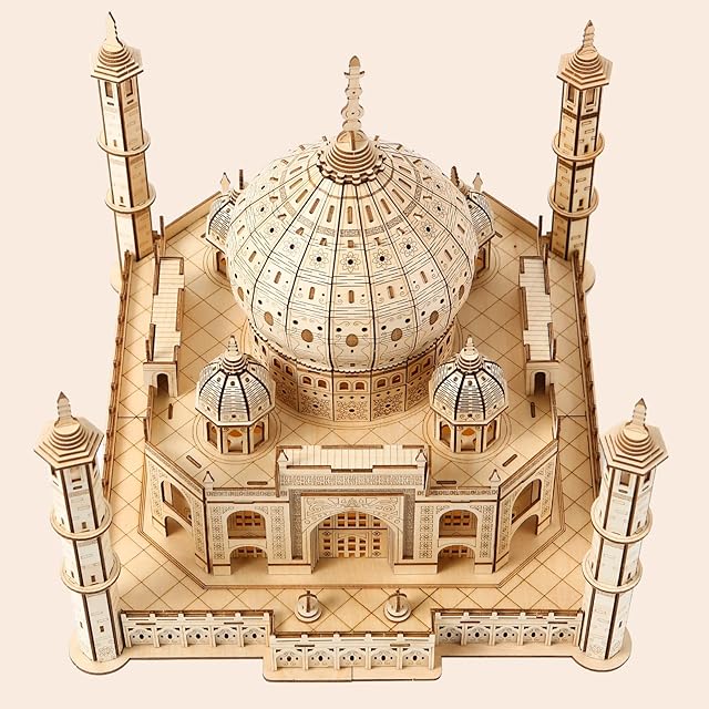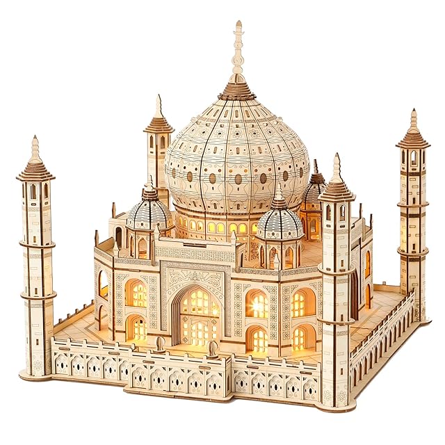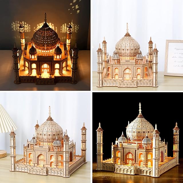 Hallisun 3D木製パズル タージマハル 木製モデル LEDライト付き インド 建物 ビルディング 立体パズル クラフト 手芸 DIY 機械式 組み立てキット 大人向け 14歳+ 日本語取扱説明書付き おもちゃ 趣味 クリスマス バレンタインデー ヴィンテージ 装飾 自宅 インテリア 誕生日ギフト プレゼント 388ピース