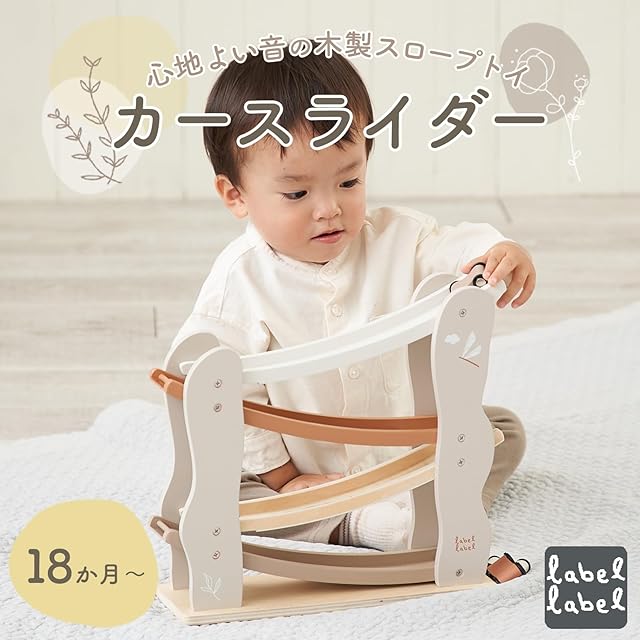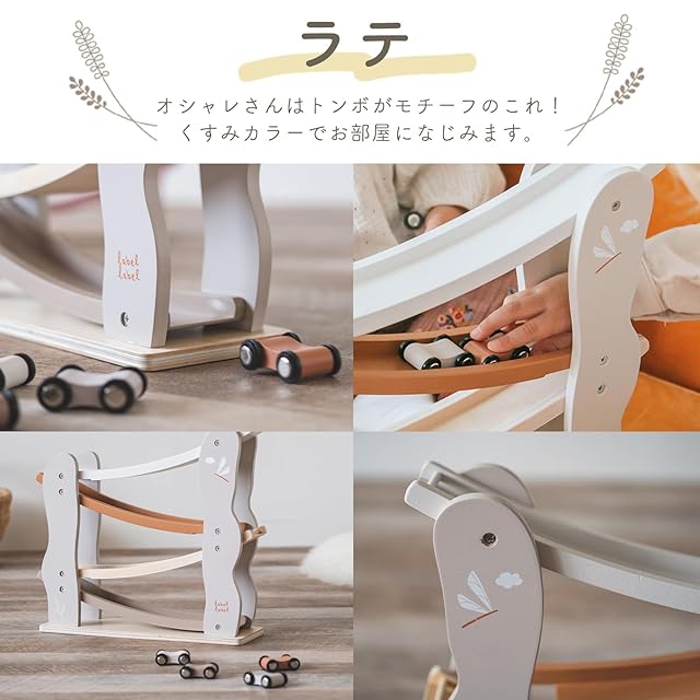 LabelLabel (レーベルレーベル) カースライダー 木製 スロープトイ 車 おもちゃ 1歳 2歳 誕生日プレゼント 男の子 女の子 木のおもちゃ 知育玩具 (ラテ)