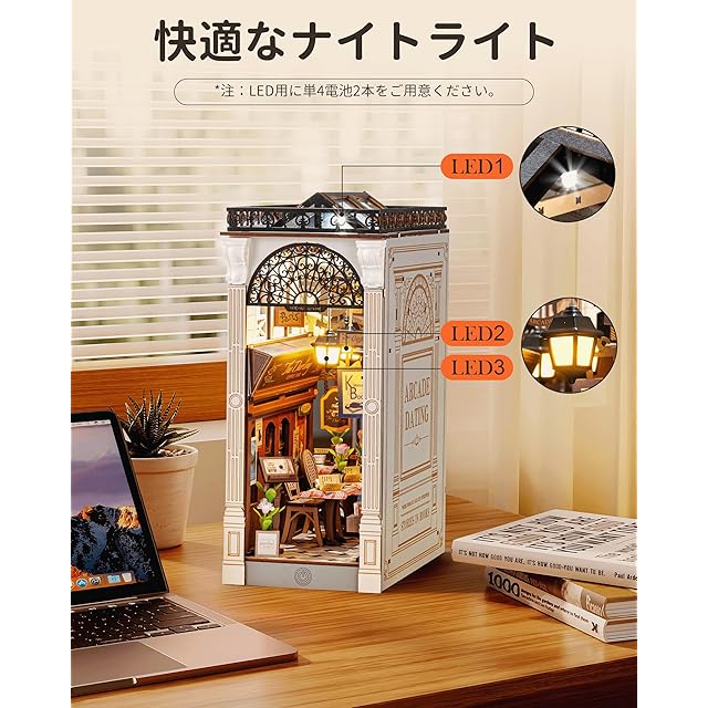 Rolife DIY ブックヌック フレンチ・ガーデン 立体パズル ミニチュアハウスキット ブックエンド 本立て LED 本棚装飾 手作りキット 組み立て 木製パズル ウッドクラフト イラスト説明書付き 公式販売 大人向け 高学年向け バレンタインデー プレゼントに最適 TGB10