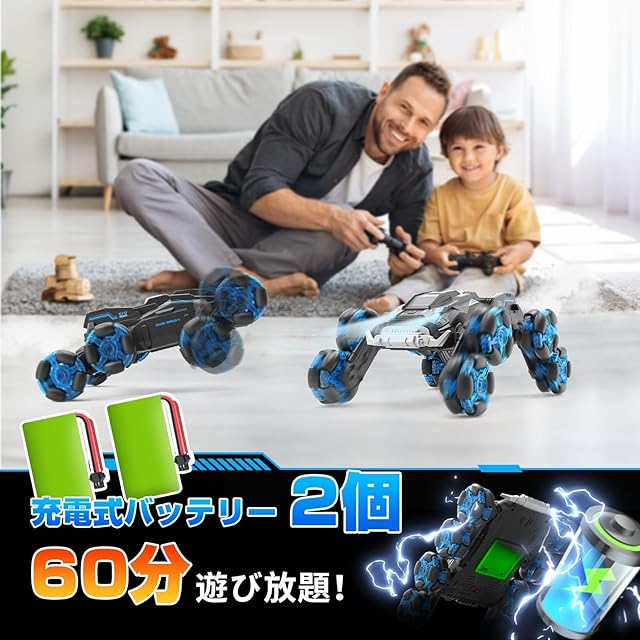 【60分操作時間&低電量警報機能】2つのUSB充電バッテリーを搭載し、約60分の操作時間を提供します。これにより、頻繁な充電なしに長時間のラジコンを楽しむことができます。さらに、低電力アラート機能があり、遊び途中に突然の電力切断を防ぎ、エンターテインメント体験をスムーズに保証します。