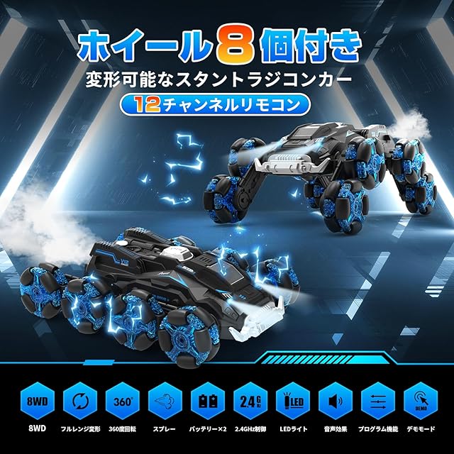 ラジコンカー 子供向け オフロード 8WD スタントカー 12チャンネル プログラミング機能&自動デモ 多種類変形 ロボット 電動RCカー 360度回転 60分操作時間 低電力アラーム機能付き 車おもちゃ MIC認証済み 2.4GHz 小学生 中学生 男の子 誕生日 子どもの日 新年 プレゼント CB558