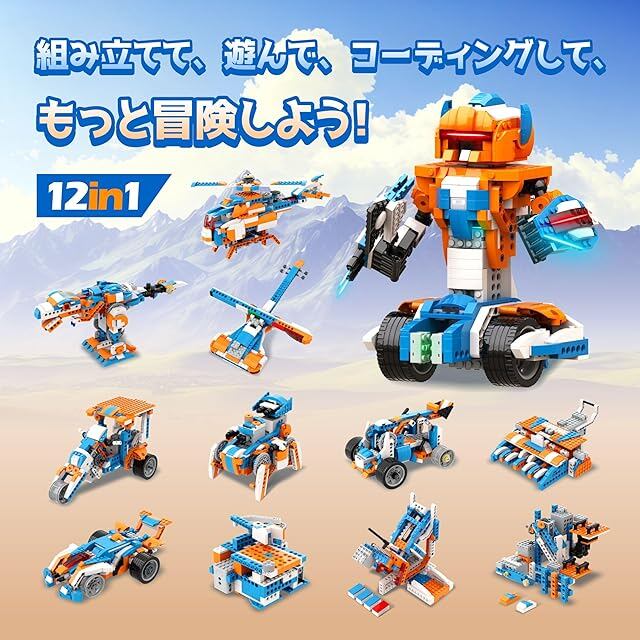 【12-in-1モデル&高互換性】本製品プログラミング ロボット計600つのブロック、3つのモーター、3つのセンサー、2つのLEDライトがあり、これらのパーツを使い、それぞれ12種の形を組み立てられます。遊びやすいように、大きさによってブロックが分類されています。また、付属のトレイを使って、好きなように分類することもできます。本製品のブロックはほとんどの市販製品と組み合わせられるため、子供は自らの想像力を駆使し、本製品のモーターで他社製品(積み木おもちゃや、おもちゃ車等)を動かすことによって、多彩多様なオリジナルおもちゃを作り、たくさんの斬新な遊び方を発掘することができます。