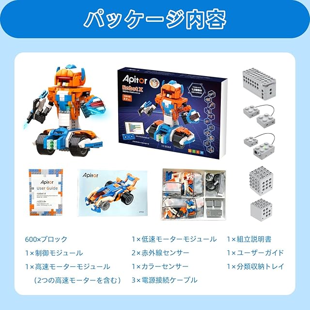 Apitor Robot X 新規 プログラミング ロボット 子供のおもちゃSTEM教育ビルディングブロック 12-in-1リモコン玩具 小学生プログラミング入門 Scratch 3.0 キッズのラジコン知育玩具8歳以上 男の子女の子 子供の日 クリスマス/誕生日プレゼント人気 入学祝い 9/10/11/12歳 日本語説明書付き