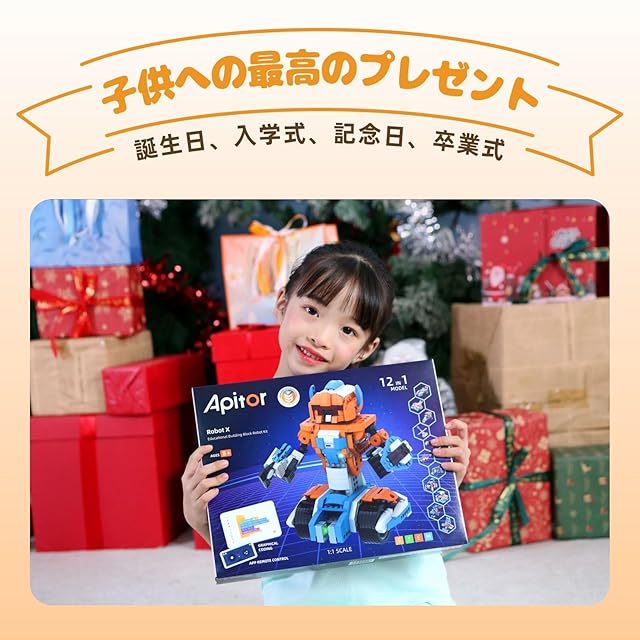 【最高のプレゼント】本製品Apitor Robot Xは、遊びと学びをたくみに組み合わせたおもちゃとして、あらゆるイベントに適しています。お誕生日プレゼントや、クリスマスプレゼント、子供の日のプレゼント、入学お祝いなど、どんな場面でもプレゼントの選択としても、間違いありません。ラジコン玩具として使ってもいいし、STEM教育ツールとして使っても無難です。プログラミングの初心者でも「入門コース」を簡単に理解することができるため、お子様は簡単な学びを通せば、家族・友人と一緒に組み立ての楽しさやプログラミングの面白さを味わえます。遊びを通して、お子様の社会性と創造力が高まり、論理的思考力と空間認識力が鍛えられ、ご家族との絆も深まります。