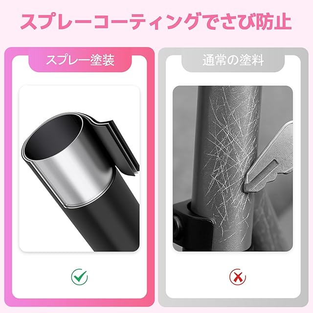【頑丈で長持ちする構造】スプレーコーティング加工の鉄製フレームで耐久性抜群です。最大100kgまでのライダーを完全にサポートします。