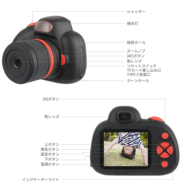 【高品質&高性能】環境にやさしい無毒で耐衝撃なABS + PC材料を採用し、安全にご利用いただけます。見やすい2.4インチスクリーンと4800万補間画素のふたつのレンズ(自撮りできる)を搭載し、48MPの写真と1080pのビデオで、完璧な撮影ができます。ライト自動補正でき、室内でも、室外でも、ライトがことなる場合でも対象に合わせて明るさを自動調整できます。写真解像度6528*4896・ビデオ解像度1920*1080で大人顔負けの高性能がふんだんに盛り込まれています。32GのマイクロSDカード付きなので、写真約9600枚撮れます。