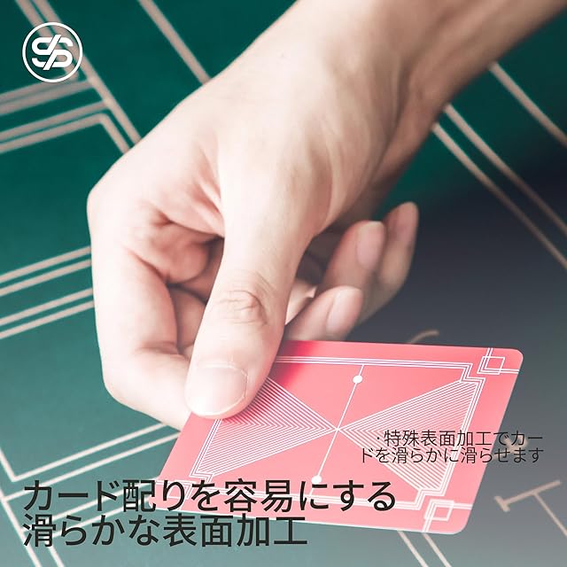 究極の手触り:ベルベットのように滑らかな手触りは触れているだけで心地よい気分にさせてくれます。カードがテーブルから滑り落ちず、なおかつプレイヤーの手元にしっかりと届くだけの計算された摩擦がディーラーすらも楽しませてくれることでしょう。