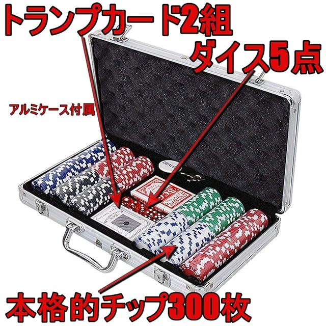 ✅約25cmのルーレット盤とボール2点とプレイマット、チップ60枚、レーキと本格的チップ300枚、トランプカード2組、ダイス5点をアルミ製アタッシュケースに収納されたフルセットですので直ぐにゲームを始められます。