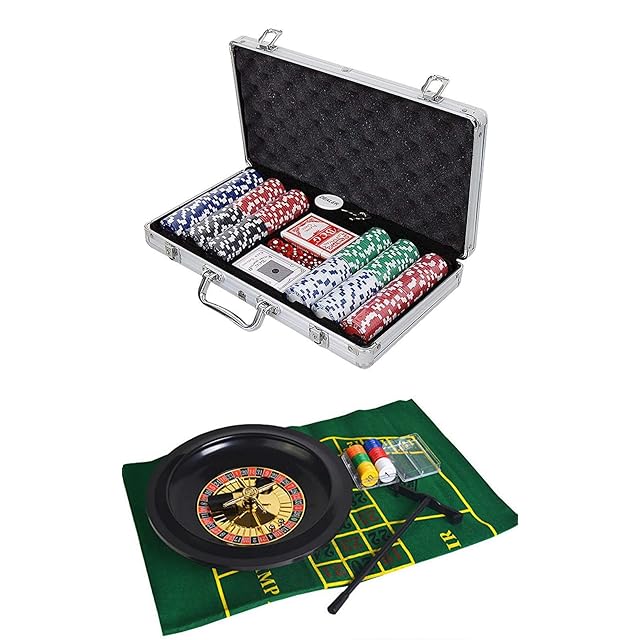 (シャシャン)XIAXIN ルーレット プレイマット レーキ セット チップ 300枚 トランプカード ダイス ポーカー カジノ セット ZA-413+378 (ルーレットセット+ポーカーセット)